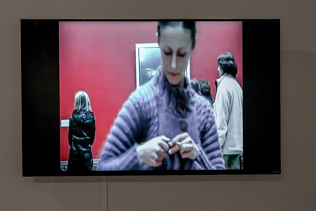 To inspire and introduce Cork residents to the unconventional undertaking of handknitting a conceptual map of the city, based on weather and urban activity, Gilson engaged in a series of monthly public performances in unexpected locales that integrated knitting-themed improvisational dance, elaborate hand-knitted costumes, and storytelling. She perched on the back of a motorcycle as it toured the streets of Cork while knitting the very biker garment she was wearing. Unannounced, she alighted on display cases in the city’s central market, dancing, knitting, and reciting tales and myths of women and textile. Performances, such as these, continued on buses, in civic buildings, in art galleries, and other public spaces, simultaneously demystified The Knitting Map as a work of contemporary art while imbuing the ordinary act of knitting with mystique and delight.