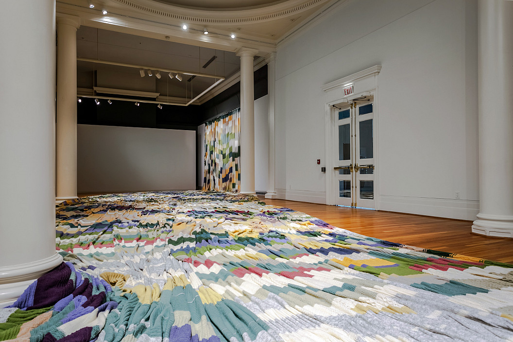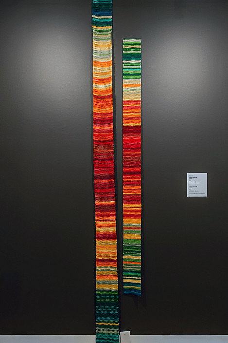 Mapping Climate Change: The Knitting Map and The Tempestry Project unites, for the first time, two innovative textile art projects that give visual and tangible presence to our warming world at a crucial moment of environmental precariousness. By translating temperature, precipitation, humidity, or windspeed data into stitch and color, these vibrant works potently and poignantly reveal the centrality of weather to notions of identity and experiences of place, and thus “map” a range of encounters from environmental to phenomenological.
